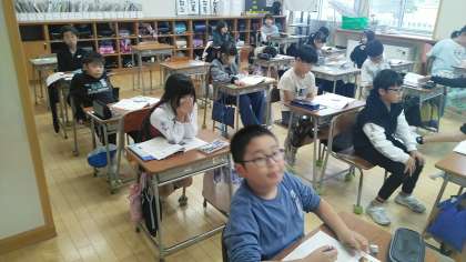 4年1組の6時間目は、国語科の学習でした。「秋の楽しみ」という学習で、紅葉や黄葉、月見だんご等の話をしていました。