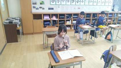 3年生の6時間目は、音楽科の学習でした。リコーダーで「あの雲のように」を演奏するテストをしていました。