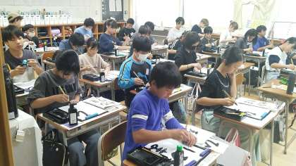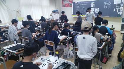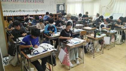 6年生の6時間目は、書写の学習でした。「ひまわり」という4文字を真剣に書いていました。