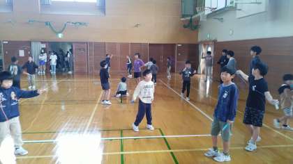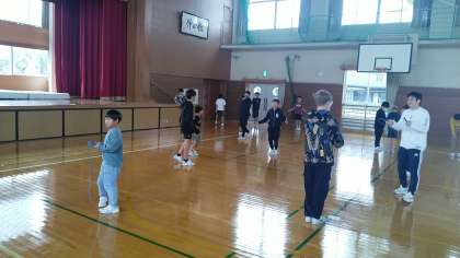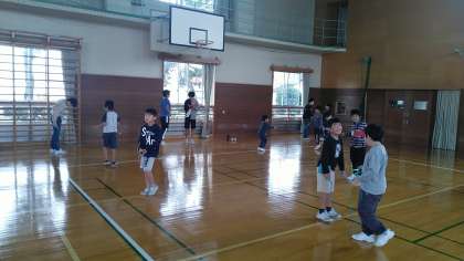 今日は、グラウンドがまだ乾いてなかったので、体育館で縄跳びをすることになりました。
