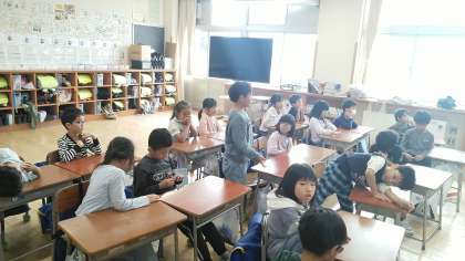 1年生の3時間目は、生活科の学習でした。どんな遊びができたかについて発表していました。
