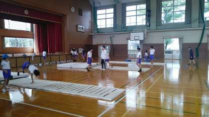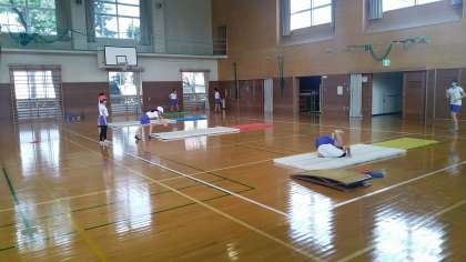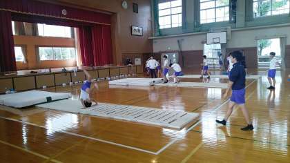 6年生の3時間目は、体育科の学習でした。体育館でマット運動をしていました。回転系の技にも進んで挑戦する人がたくさんいました。けがをしないためにも、準備運動(特に手首、足首の柔軟)等もしっかりしてくださいね。