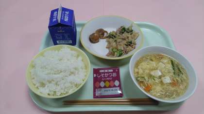 10月30日(水)の給食 公開日 2024/10/30 更新日 2024/10/30 学校から 今日の給食です。 【献立】 ごはん 牛乳 ほたての照焼き 切干大根のペペロンチーノ かきたま汁 しそかつおふりかけ です。