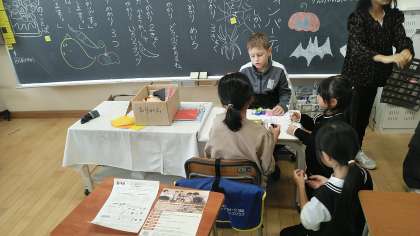 2年生は、1時間目にハロウィンパーティーし準備を進めていました。今日、ハロウィンパーティーをするみたいです。