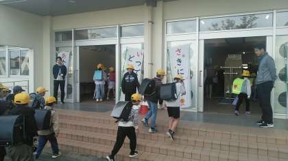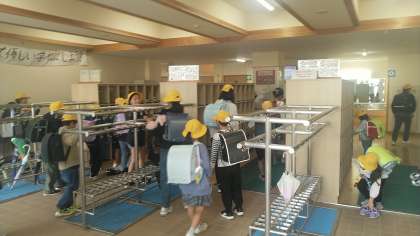 今朝の児童玄関の様子です。今日は、日光も出ていて清々しい朝です。子供たちの挨拶も元気です。
