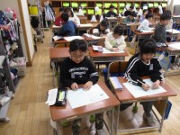 1年生の4時間目は、算数科の学習でした。ドリルを使って、たし算の練習をたくさんしていました。