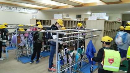 今朝の児童玄関の様子です。雨は落ちてませんでしたが、曇り空で肌寒い日でした。子供たちの挨拶は元気です。