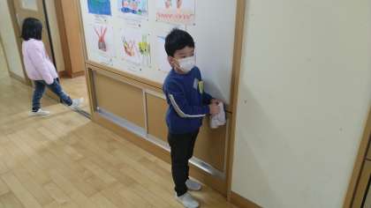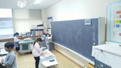 今日も、壁の汚れを落としたり、黒板をきれいにしたりしてくれていました。