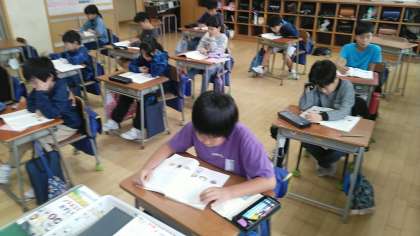 3年生の1時間目は、国語科の学習でした。「すがたをかえる大豆」というお話を一人一人が読み進めていました。