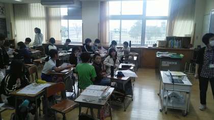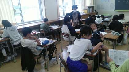 5年生の2時間目は、外国語科の学習でした。テスト直しをしていました。