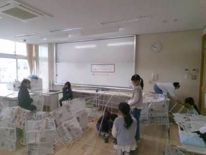 11月5日(火) 4年1組 図工「つないで つないで 仲間とつくろう わたしたちの町」2