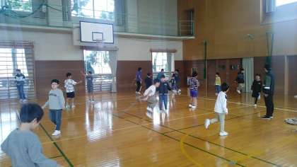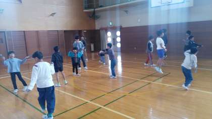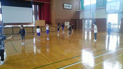 今日は、グラウンドに水たまりがあったので、体育館で縄跳びをすることになりました。