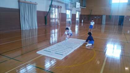 3年生の3時間目は、体育科の学習でした。走り幅跳びの練習をしていました。手をふりあげてとびだすタイミングをつかむ練習みたいです。