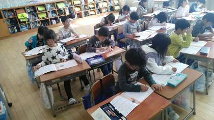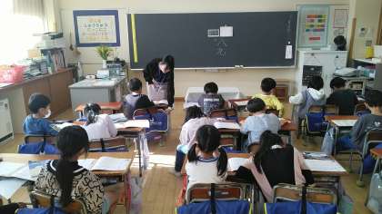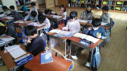 1年生の5時間目は、国語科の学習でした。漢字ドリルを使って、八や九の直しをしていました。