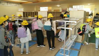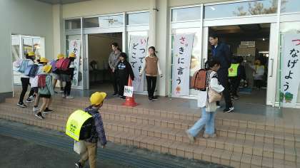 今朝の児童玄関の様子です。日光がさしていて、あまり寒くもなく気持ちのよい朝です。子供たちの挨拶も元気がありました。