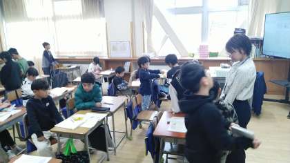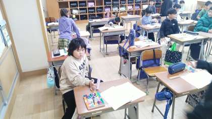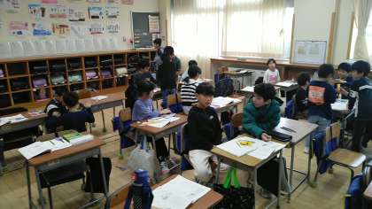 2年生の1時間目は、国語科の学習でした。「紙コップ花火の作り方」という説明文を読んで、実際に紙コップ花火のおもちゃをつくるという学習をしていました。