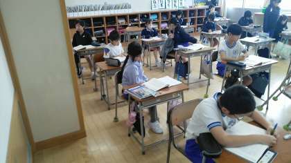 4年1組の1時間目は、国語科の学習でした。「未来へつなぐ工芸品」という説明文を読んで考えていました。