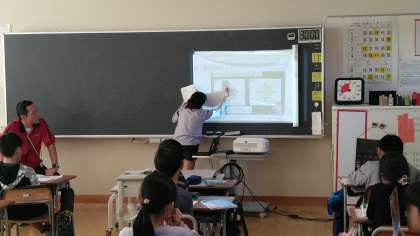 4年1組の5時間目は、算数科の学習でした。ドットの数を工夫して計算していました。