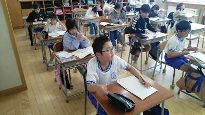 4年1組の1時間目は、国語科の学習でした。話合いの仕方について、一人一人がまとめていました。
