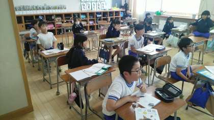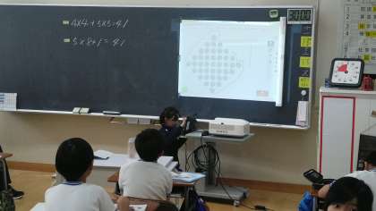 4年1組の5時間目は、算数科の学習でした。ドットの数を工夫して計算する問題を解いていました。