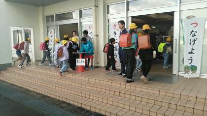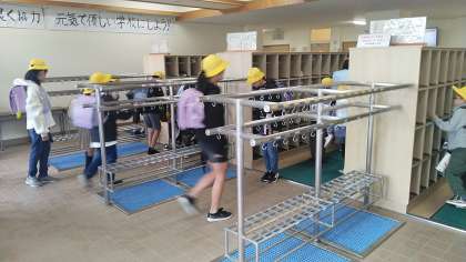 今朝の児童玄関の様子です。日光はさしていましたが、肌寒い朝です。元気のよい挨拶はいつもより少なかったかも…。