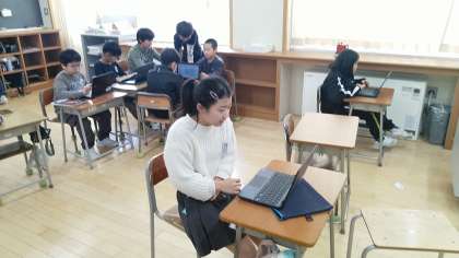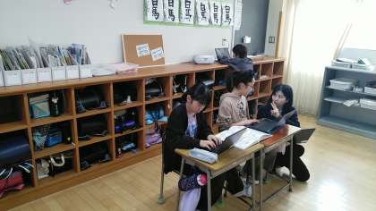 4年2組の1時間目は、国語科の学習でした。「未来につなぐ工芸品」の学習で調べた伝統工芸品を紹介するスライドをつくっていました。