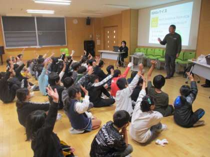 外部講師をお招きして、SDGsや富山県の花チューリップについて教えていただきました。子供たちは、プラスチックのリサイクルは9%しか行われていないことや、富山には100種類ものチューリップの品種があることに、とても驚いていました。その後、資源を再利用したプランターに、土、木炭を入れて、4種類のチューリップの球根を植えました。春にきれいなチューリップが咲くのを楽しみにしながら、たっぷりと水をあげていました。