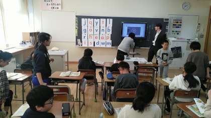 4年2組の6時間目は、外国語活動の時間でした。絵の中からアルファベットを探していました。