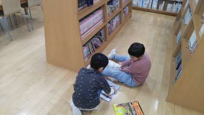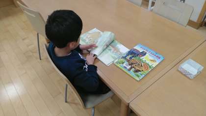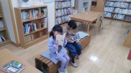 1年生は、1時間目に図書室にいました。図書室で本を選んで読んだり、借りたりしていました。