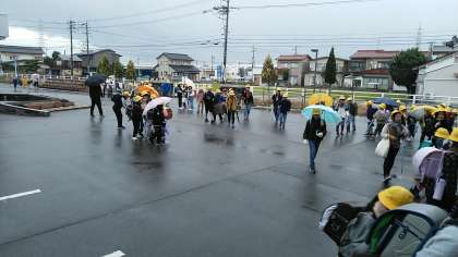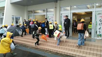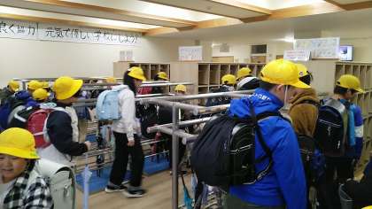 今朝の児童玄関の様子です。小雨が降っていてとても寒い朝です。子供たちも寒そうでした。