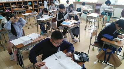 4年1組の5時間目は、算数科の学習でした。工夫して計算するところのまとめをしていました。