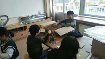 11月19日(火) 4年2組 おもしろ段ボールボックス