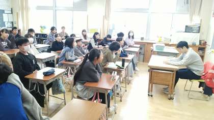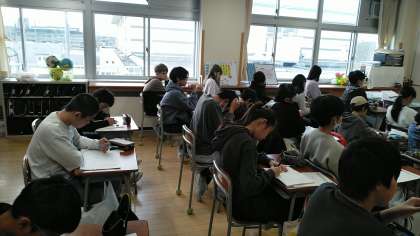 6年生は、1時間目に明日の校外学習について確認していました。