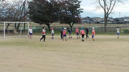 6年生の5時間目は、体育科の学習でした。グラウンドでサッカーをしていました。