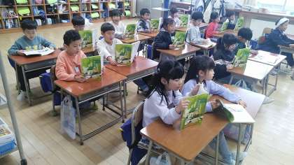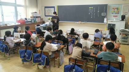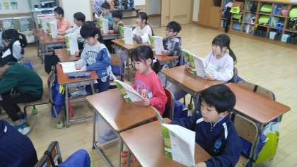 1年生の3時間目は、国語科の学習でした。「自動車くらべ」という説明文の音読をしていました。先生の後に続いてみんなで音読していました。