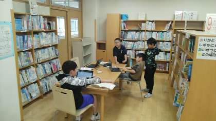 4年1組の5時間目は、社会科の学習でした。実際に図書室で資料等見付けてメモしていました。