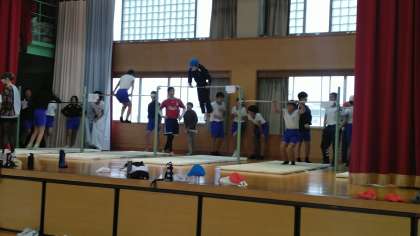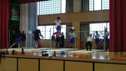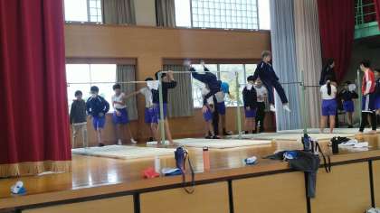 6年生の5時間目は、体育科の学習でした。体育館のステージで鉄棒をしていました。かなりくるくる回れる人もいるみたいです。