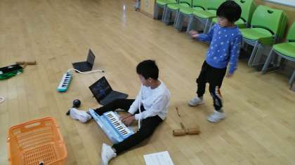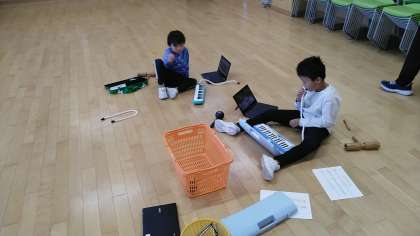 つばめ野級2組の1時間目は、音楽科の学習でした。音楽室でクロームブックで動画を見ながら「チピチピ チャパチャパ」という曲の鍵盤ハーモニカの演奏を楽しんでいました。躍りもしていました。
