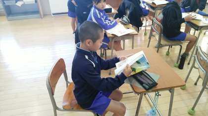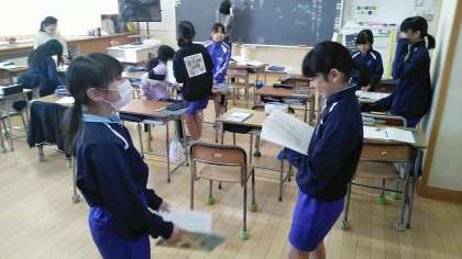 4年2組の1時間目は、国語科の学習でした。短歌や俳句の暗唱の練習をしていました。
