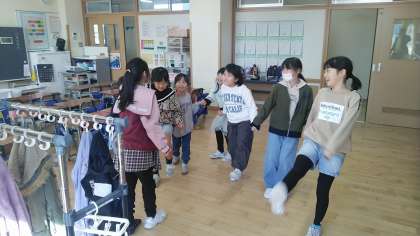 今日の休み時間(2限と3限の間)の様子です。外で遊んだり、教室で花いちもんめをしたりしていました。