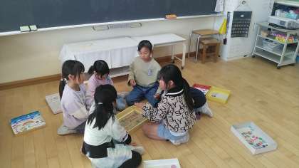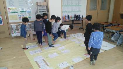 1年生の3時間目は、図画工作科の学習でした。自分たちがつくったすごろくをみんなで楽しんでいました。
