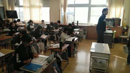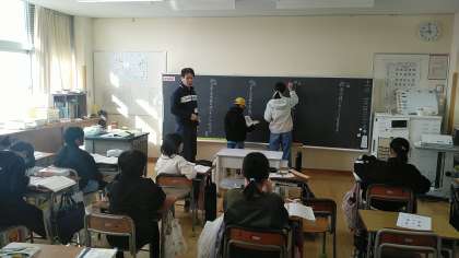 5年生の1時間目は、国語科の学習でした。「固有種が教えてくれること」を読んで、グループごとに問題に答えていました。