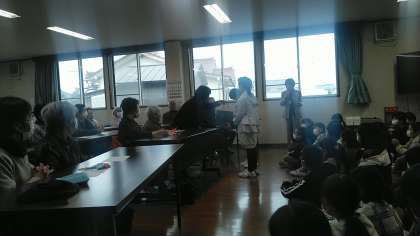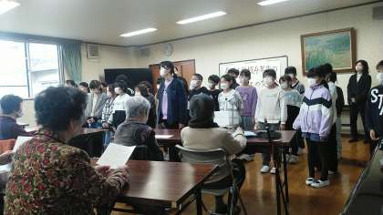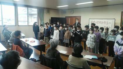 「ありがとうの花」と「もみじ」を合唱しました。「もみじ」は、地域の皆さんと一緒に歌いました。代表が終わりの挨拶をしたあと、地域の代表の方よりお礼の言葉とプレゼントをいただきました。とても楽しく思い出に残る交流でした。ふれあいサークルの皆さん、ありがとうございました。