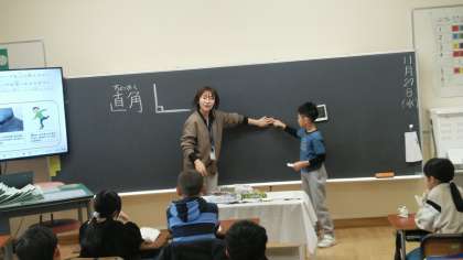 2年生の1時間目は、算数科の学習でした。いろいろなものの中から「直角」を見付けていました。