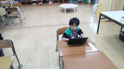 つばめ野級2組の1時間目は、クロームブックの操作練習の時間でした。タイピングソフトを使って練習をしていました。