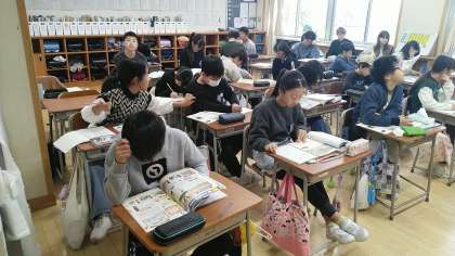 6年生の1時間目は、社会科の学習でした。「近松門左衛門」や「歌川広重」等、江戸時代の文化に関係のある人物について調べていました。