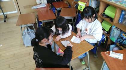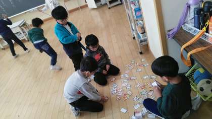 1年生教室では、カードゲームや折り紙をして遊んでいる人が多かったです。