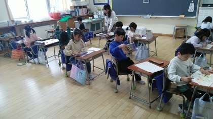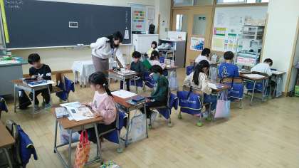 1年生の5時間目は、国語科の学習でした。学習のたしかめをしていました。