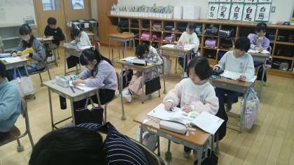 4年1組の5時間目は、算数科の学習でした。対角線を調べて平行四辺形や台形について考えていました。