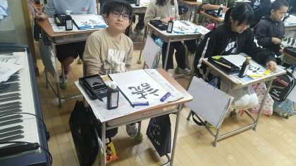 5年生の5時間目は、書写の学習でした。「読む」という文字の練習をしていました。